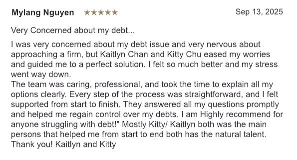 減低債務高達80%JANE WOO 胡雪貞幫到您 ✔︎ 減本、停息 ✔︎ 即時停止債務追討 ✔︎ 統一處理多項債務 ✔︎ 每月可負擔供款計劃 ✔︎ 保留退休金、房屋及汽車等 ✔︎ 不影響入息及政府資助 預約免費咨詢,資料保密免費熱線:1-888-885-6593 姓名 (必填) 電子郵箱 (必填) 電話 (必填) Δ 請隨時透過微信聯繫我們 微訊號:janewoosoffice2 成功幫助超過 100,000 名加國客戶 我們將全程指導您 步驟一: 預約免費諮詢,讓我們了解您的情況 步驟二: 提供適合您現時財務狀況的債務減免計劃 步驟三: 擺脫債務,並重新掌控自己的生活預約免費咨詢要無債一身輕,您我都做得到!JANE WOO 胡雪貞幫到你 JANE WOO 胡雪貞 聯邦政府註冊信託師 CIRP, LIT A. Farber & Partners Inc.合夥人兼區域業務總監 債務重組 破產申請 重建信用 免費咨詢想了解更多如何處理債務問題? 債務處理知多少視頻 YOUTUBE 頻道 小紅書頻道 網誌胡雪貞最新電台訪問 更多電台訪問 4.9 TrustScore (over 4500 reviews) 9x Consumer Choice Award 超過90個辦事處 40年以上的經驗 幫助超過100,000名加國客戶 星級的客戶評價 聯絡我們